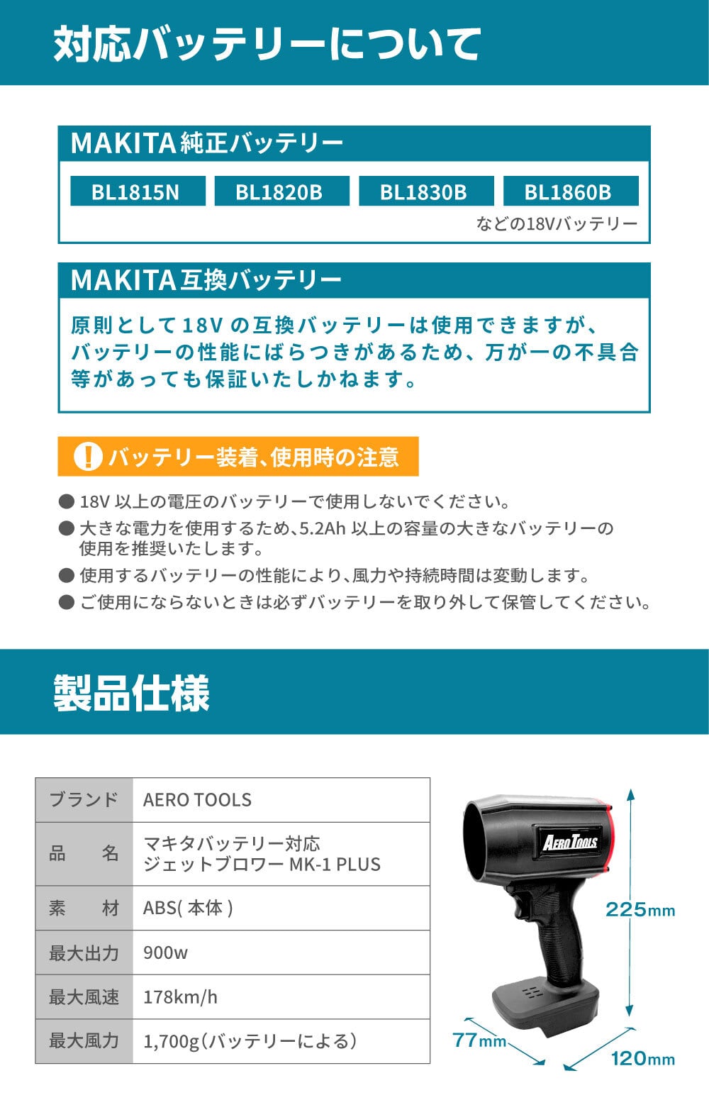 ※マキタ純正バッテリー「18Vリチウムイオンライトバッテリ」には対応しておりません。